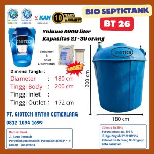 Bio septic tank 5000 liter (5 m³) adalah pilihan ideal untuk fasilitas atau bangunan dengan volume limbah cair besar. Dengan kapasitas yang lebih besar, bio septic tank 5 m³ cocok digunakan untuk kompleks perumahan, gedung perkantoran, atau fasilitas industri. Harga bio septic tank 5 m3 dapat bervariasi tergantung pada kualitas material, teknologi yang digunakan, serta fitur tambahan yang disesuaikan dengan kebutuhan Anda.